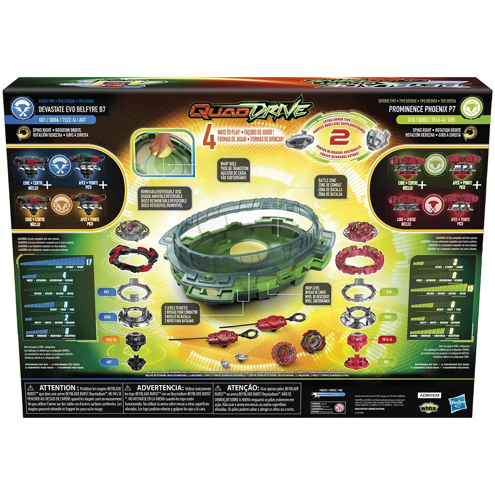- HARNESS THE POWER OF QUADDRIVE: Beyblade Burst QuadDrive launches into the future of Beyblade with the first ever 4-in-1 top! Customize the battle on 2 levels with the Interstellar Drop Battle Set!