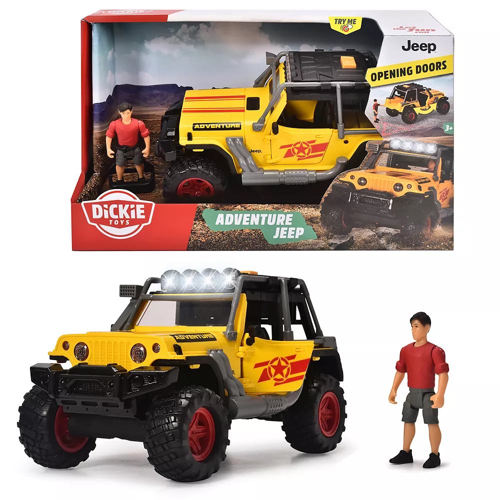Let the adventure begin with this Dickie Toys Light & Sound Jeep Adventure Playset.