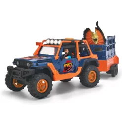 This “Jeepster Commander” off-road vehicle (original Jeep license in 1:24 scale) comes with a trailer and cage, as well as ranger who is on the lookout for giant reptiles. The off-road vehicle features rotating wheels and has everything you need to navigate rough terrain: spring-loaded rubber tires, hinged doors, tuning parts and light and sound effects.