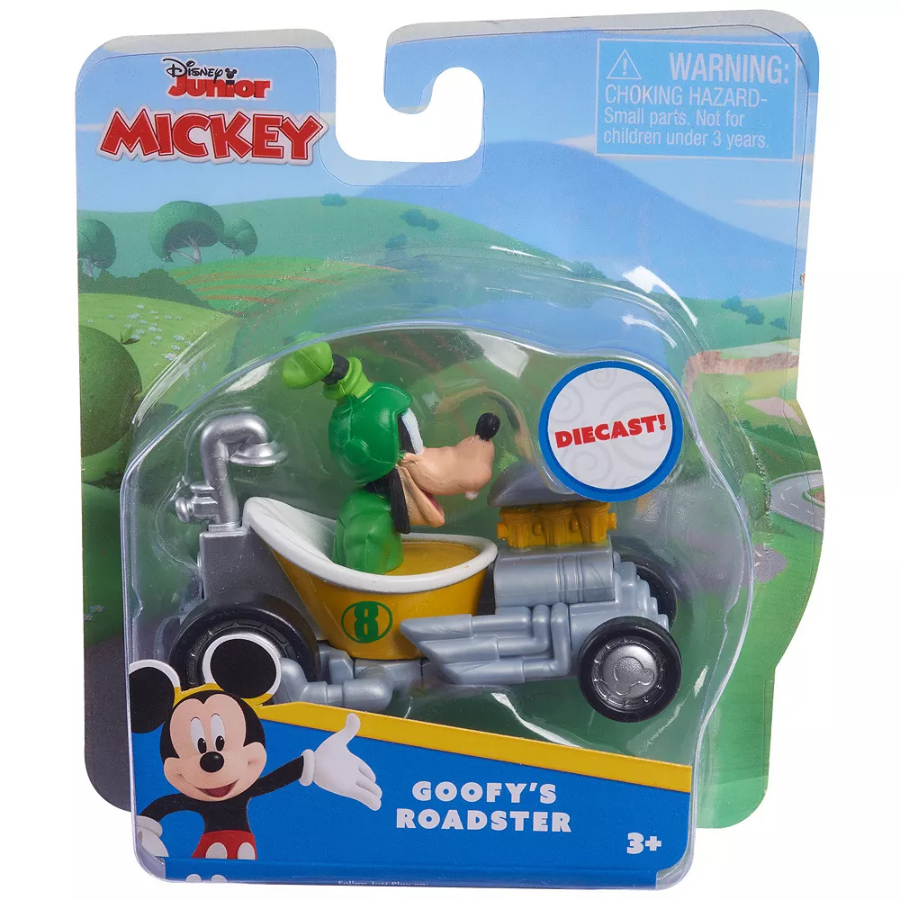 - Mickey Mouse Diecast Vehicle assortment includes Mickey Mouse, Minnie Mouse, Donald Duck, and Goofy Each vehicle sold separately
