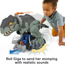 Kids can roar into epic Jurassic World Dominion adventures with the Fisher-Price Mega Stomp & Rumble Giga Dino toy from Fisher-Price.
