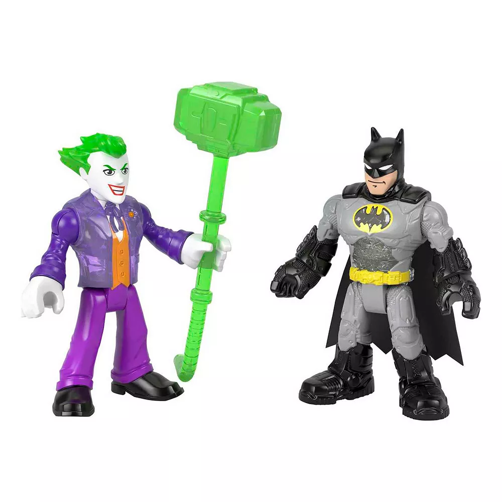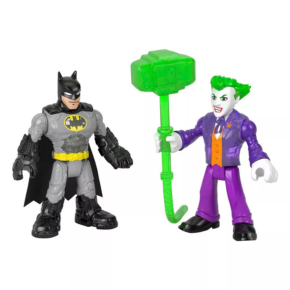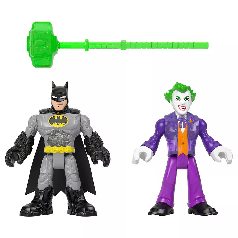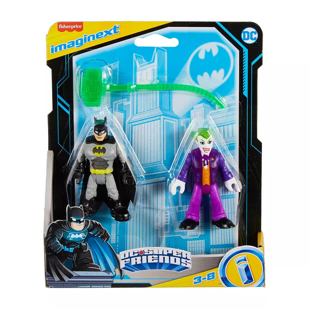 Young fans can bring to life all sorts of Super Hero versus Super-Villain battles with this Imaginext DC Super Friends Batman and The Joker figure pack from Fisher-Price. These poseable character figures come with a removable battle accessory for more action-packed pretend play. Bring these figures to the power chamber of the Imaginext DC Super Friends Bat-Tech Batcave to see their translucent torsos light up!