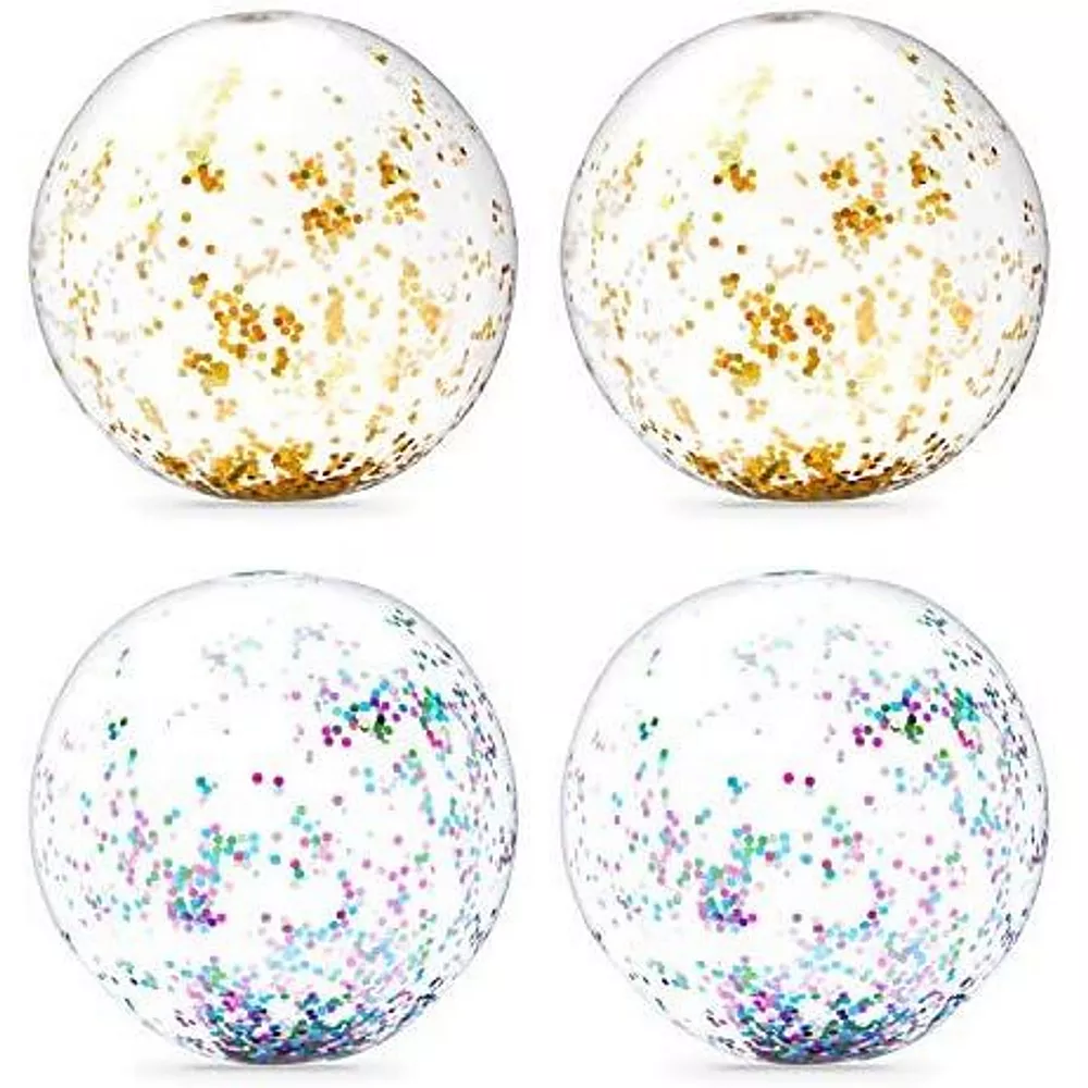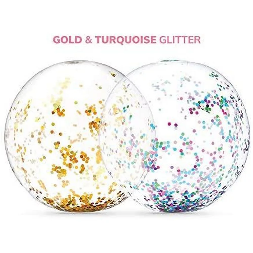 - What’s Included: Comes with 2 inflatable beach balls with gold and turquoise confetti inside