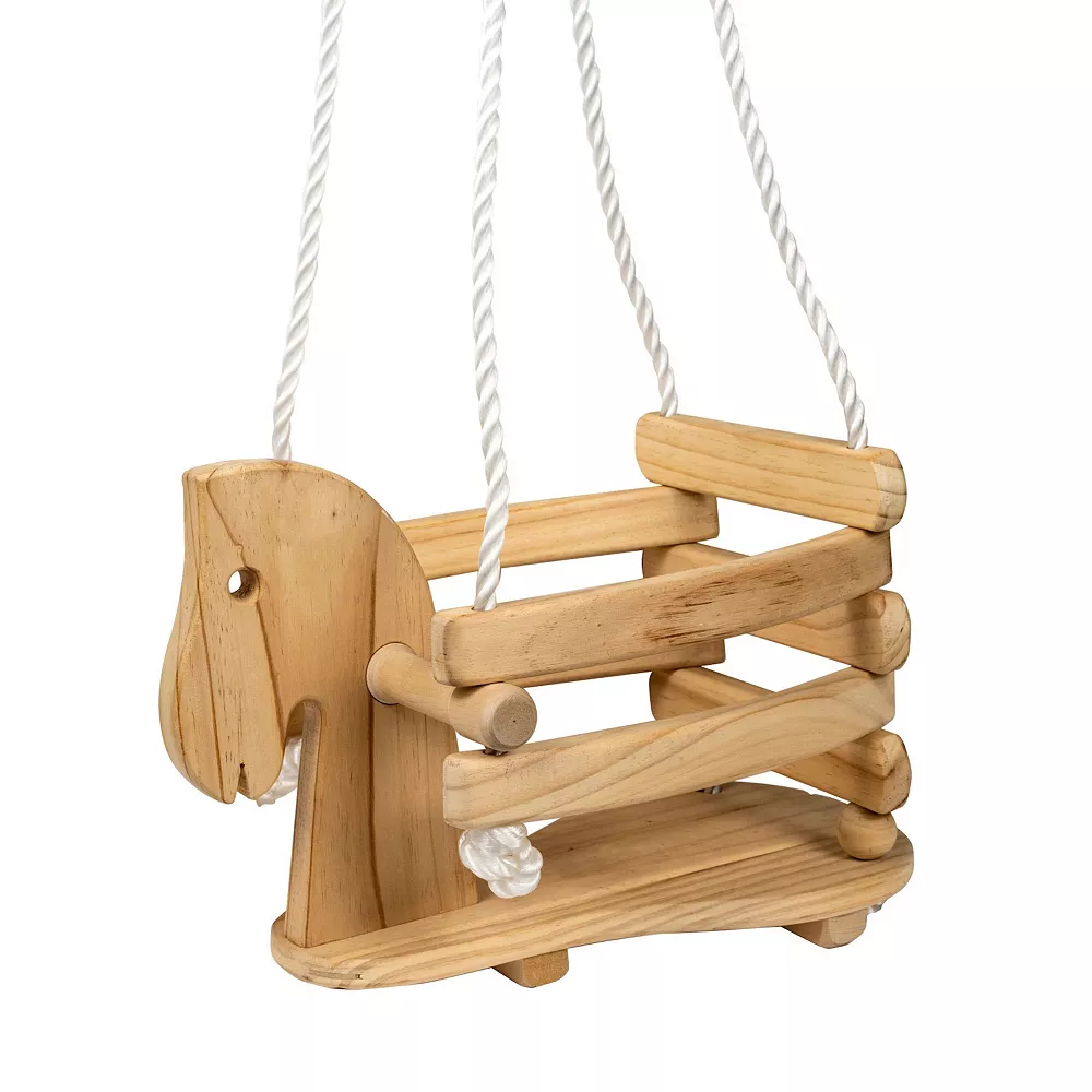 Made of real wood, this unique horse-shaped swing is the perfect indoor or outdoor swing for your little one.
