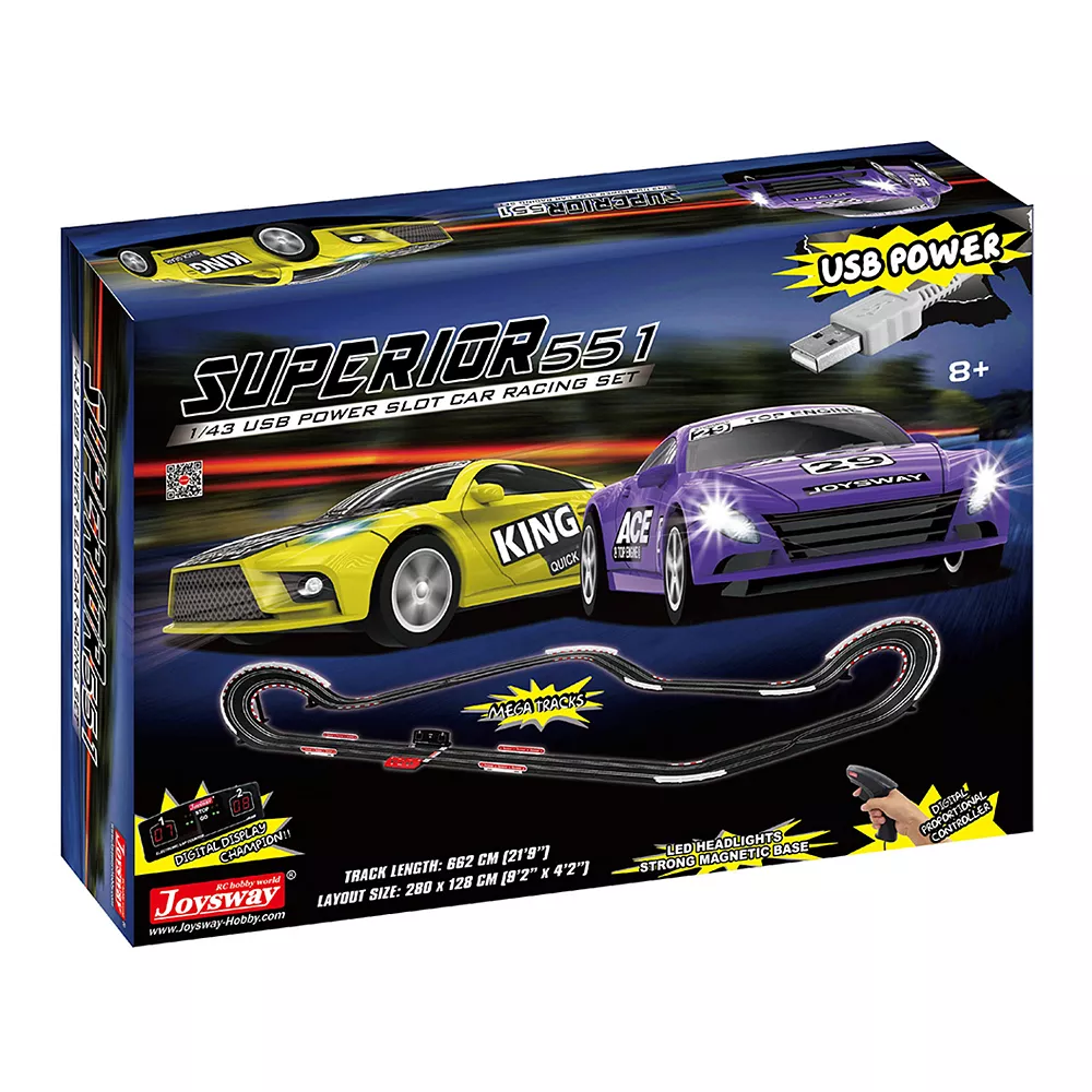 Let the adventure begin with this JOYSWAY Superior 551 USB Power Slot Car Racing set.
