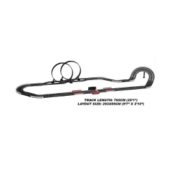 - KING orange sport car x 1, ACE purple sport car x 1, Digital proportional speed controller x 2, Digital Display Lap counter & Powerbase combo track x 1, USB power cable x 1, Single Lane “S” Shape Track x 2, Curve track x 12, Straight track x 13, Banked Track x 2, Crossover Track x 2, Single Lane Looping Track x 16, Single Lane Straight Track x 8, Base of Single Lane Looping Track x 4, Holding Post for Banked Tracks x 1, Bridge Stand x 3, Holding Post Connector x 1, Bridge Pillar x 4, Bridge Barrier x 4, Bridge Track Support x 3, Guardrail x 12, Manual x 1, Label sticker for lap counter and bridge barrier.