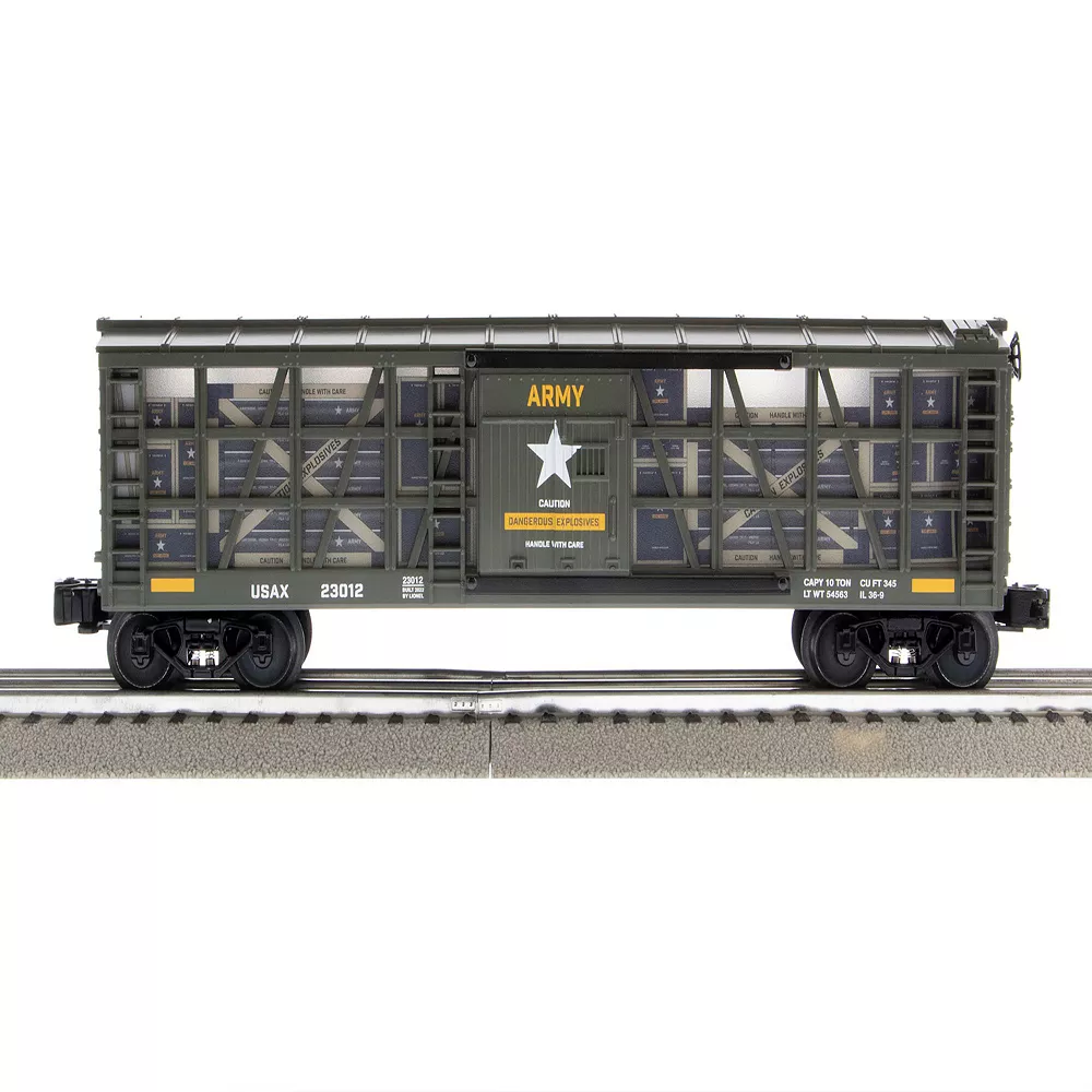Lionel Army Freight Electric O Gauge Train Set with Remote and Bluetooth 5.0 Capability comes complete with everything you need to get your train up and running to head out to replenish the base.