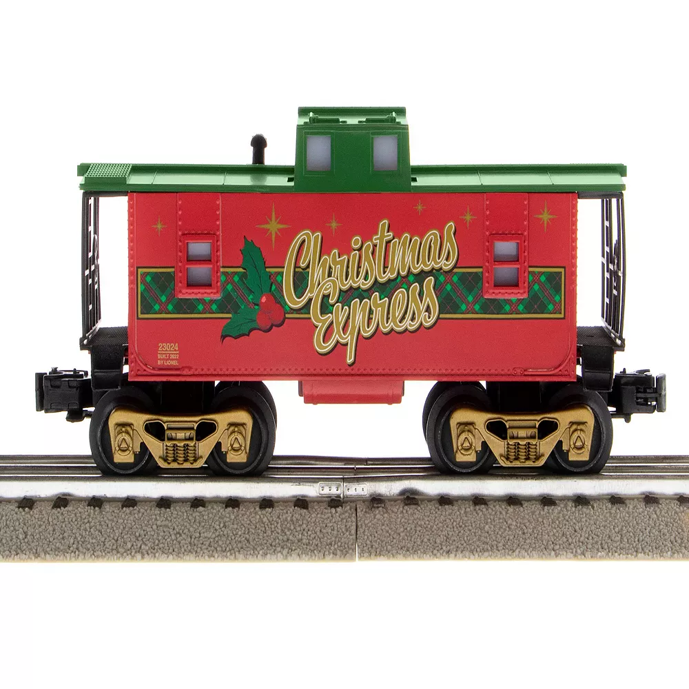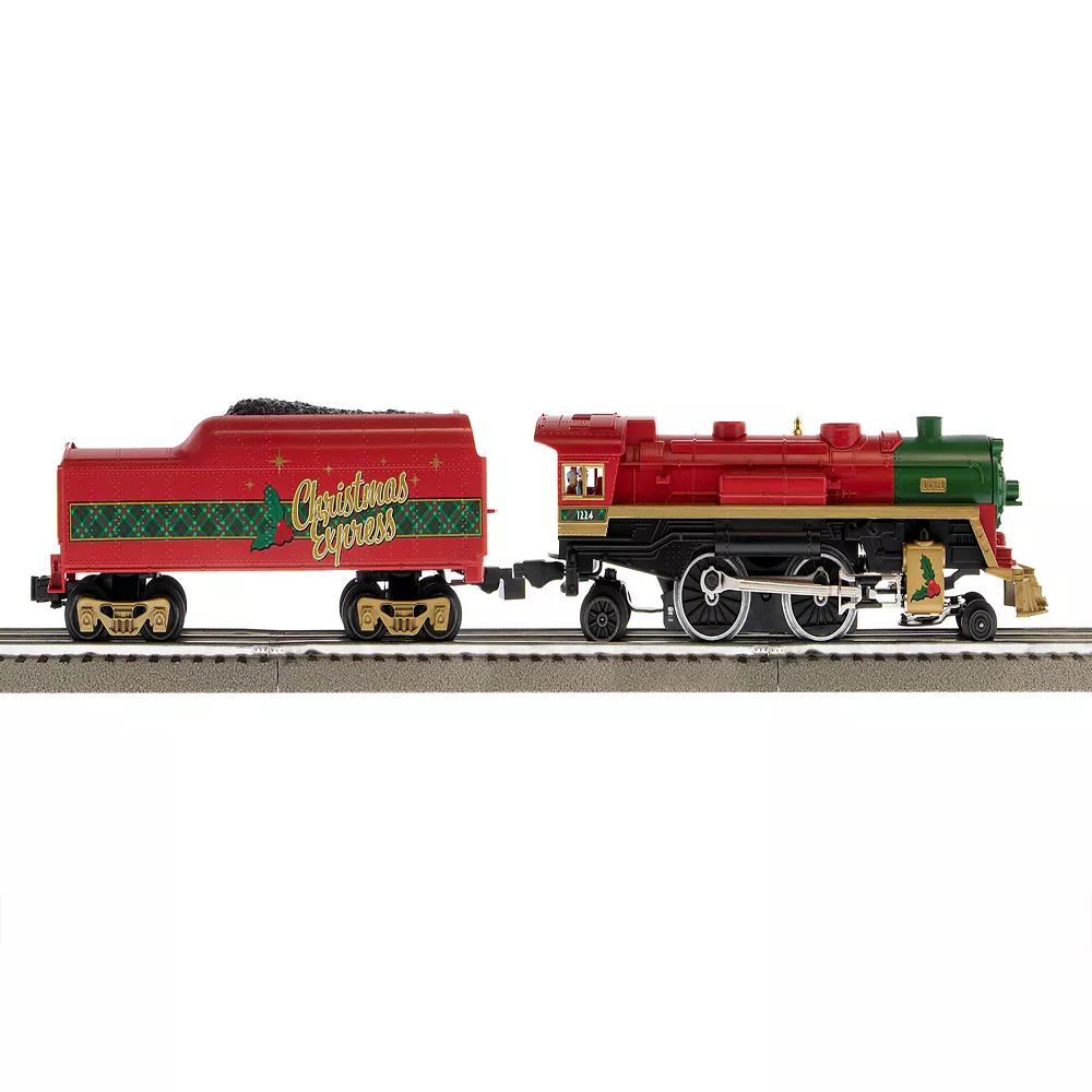 - Christmas Express 2-4-2 Steam Locomotive, Tender, Merry Christmas Boxcar, Santa Maintenance Car with Santa Figure, Christmas Express Caboose, Eight O36 Curved FasTrack sections, Two 10 Inch Straight FasTrack sections, One FasTrack Terminal section, One Plug Expand Play Power Lock-on section, Wall-pack Power supply, LionChief Remote for Locomotive