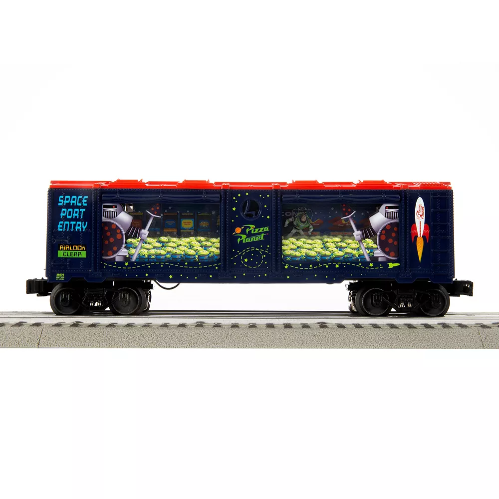 Update your track layout with this bright and colorful Pizza Planet boxcar.
