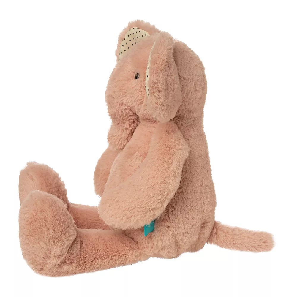 The super-soft fabrics and attractive contrasting colors of the ears are the hallmark of the Pattern Pals. This dusty rose pink elephant with cream and polka dot inner ears is a perfect go-everywhere sidekick and is ideal for snuggling with little ones at bedtime!