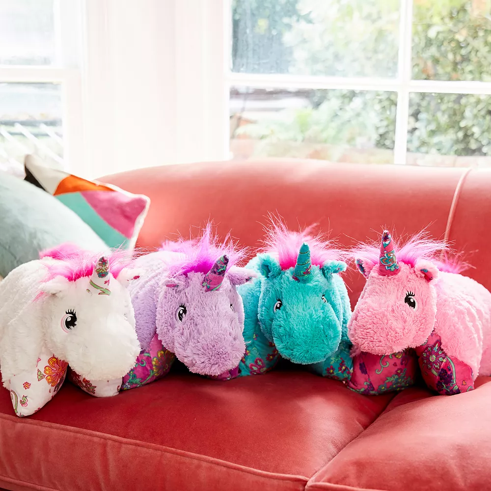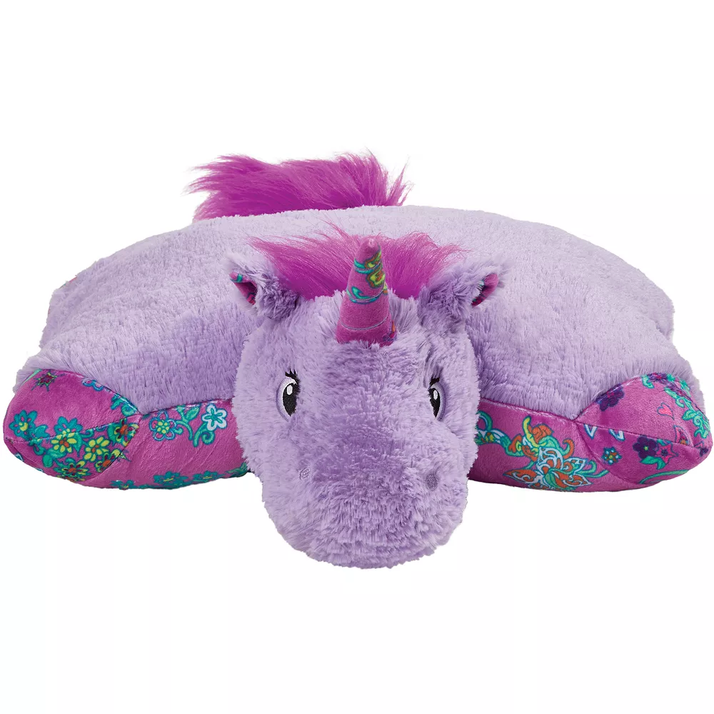 Your little one will adore snuggling up with this Pillow Pets Colorful Lavender Unicorn Stuffed Animal Plush Toy whether at home or on the go!
