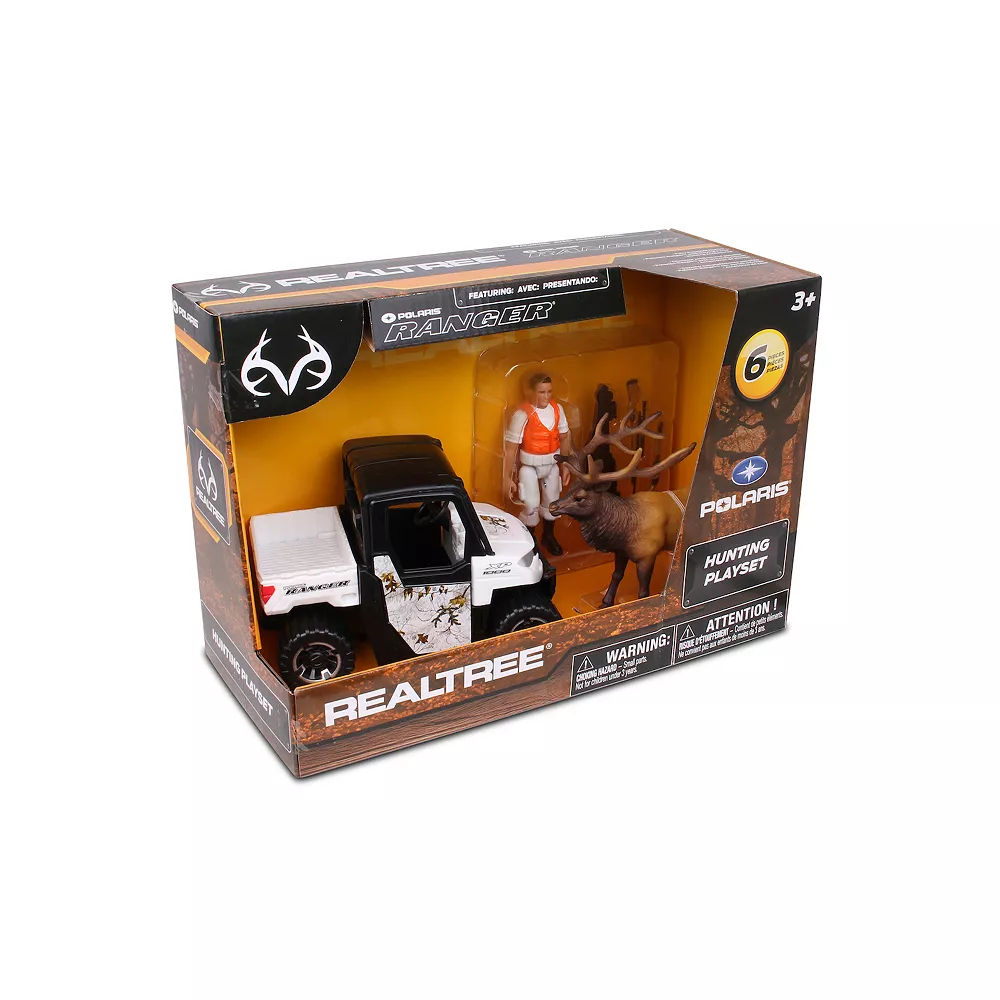 Your child will have a blast playing with this RealTree 6-piece Polaris Ranger Elk Hunting playset.