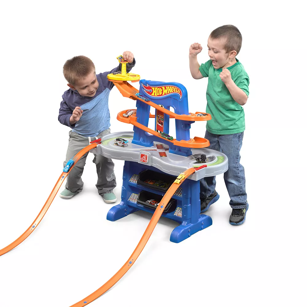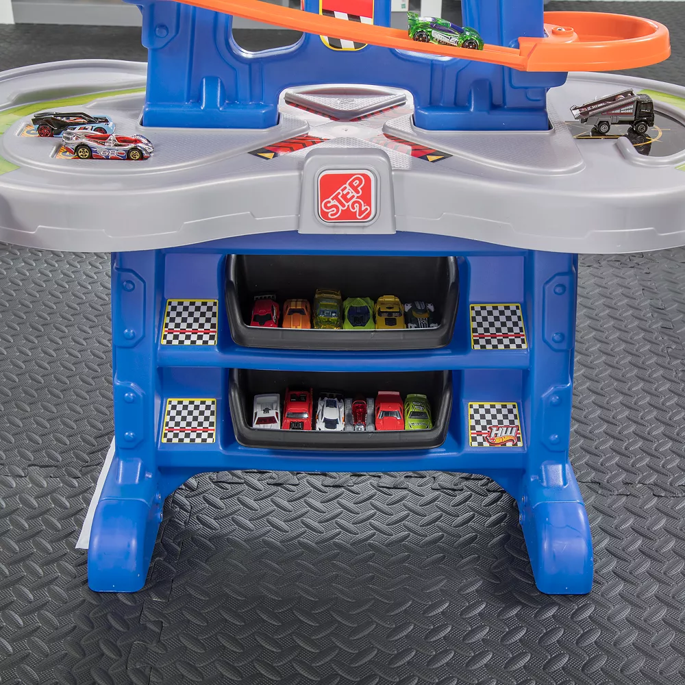 Launch your favorite Hot Wheels vehicle on this Hot Wheels road rally raceway car track tower by Step2 and see who reaches the bottom first!
