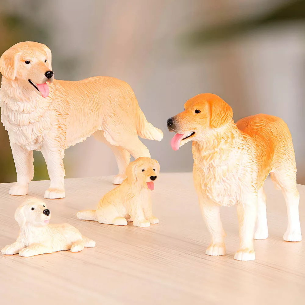 These plastic dogs are great companions for a dog lovers and collectors of miniature figurines. Lovingly created with accurate and realistic details, the small golden retriever figurines stand on their own paws and stick out their tongues like the real animals.