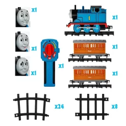 - LOCOMOTIVE FEATURES: Bell, whistle and authentic Thomas sounds, moving eyes, 3 Interchangeable Thomas faces included