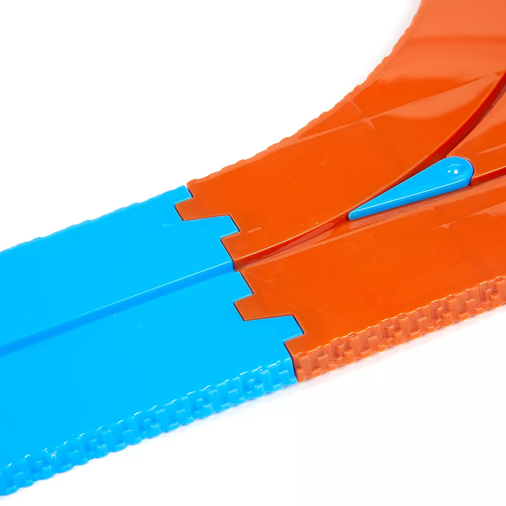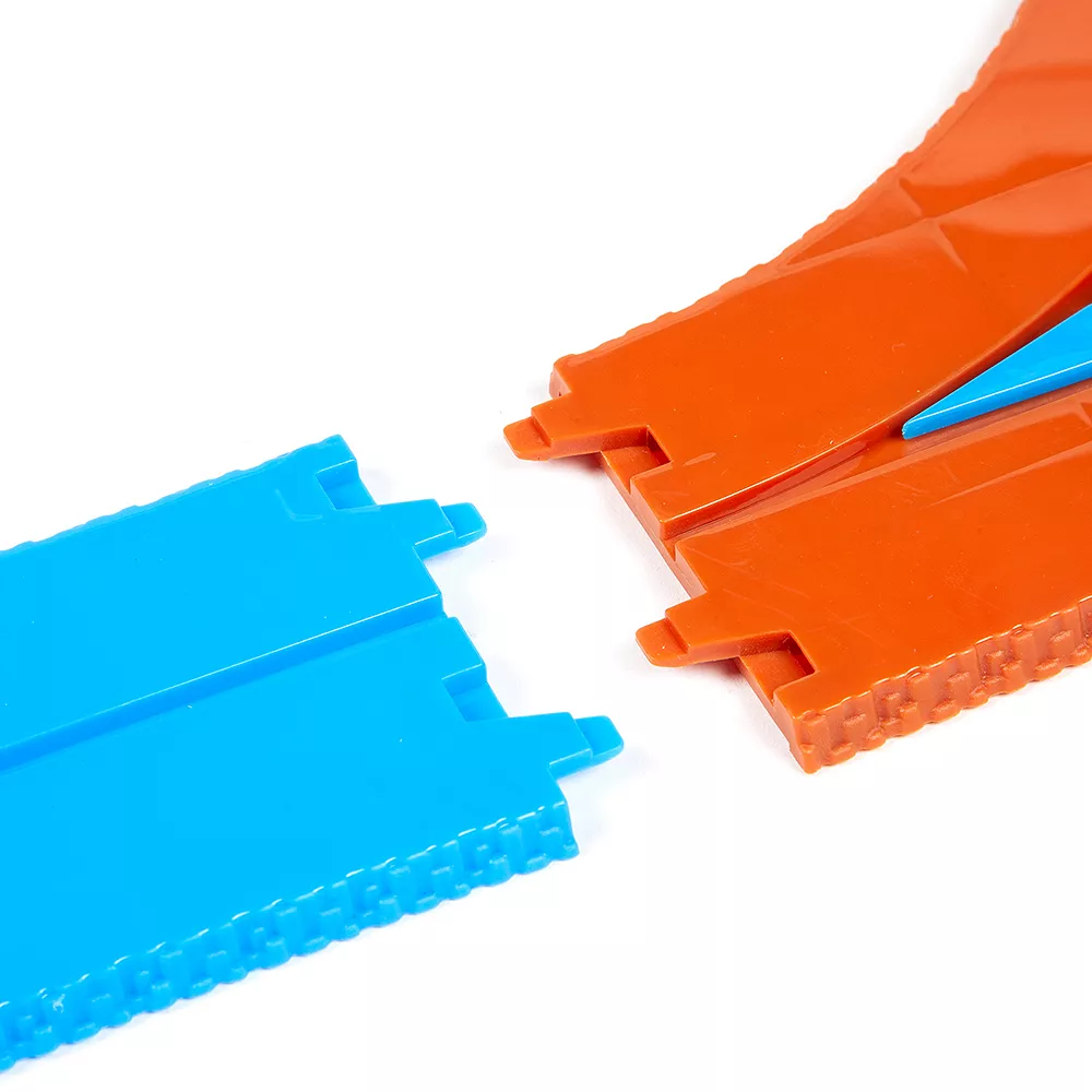 - The possibilities are endless with bridges, curved tracks, elevated tracks and street signs as the track pieces can be interchanged and snapped on to make colorful combinations