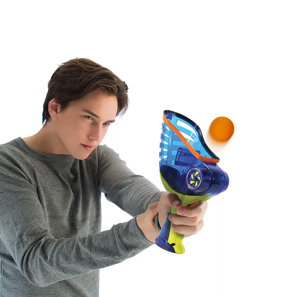 Zoom towards the sky with the Zoom-O Ball Shooter from Blip Toys! Just load a ball into the shooter, pull the trigger and watch it take off towards the clouds. Try to catch the ball in the catch basket as it comes back down to earth!
